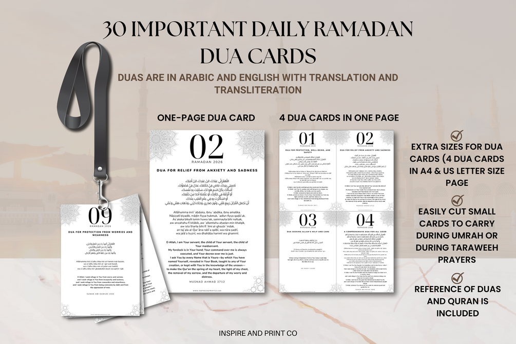--Easily cut into small carry-along cards for Umrah, Taraweeh, or daily reminders.