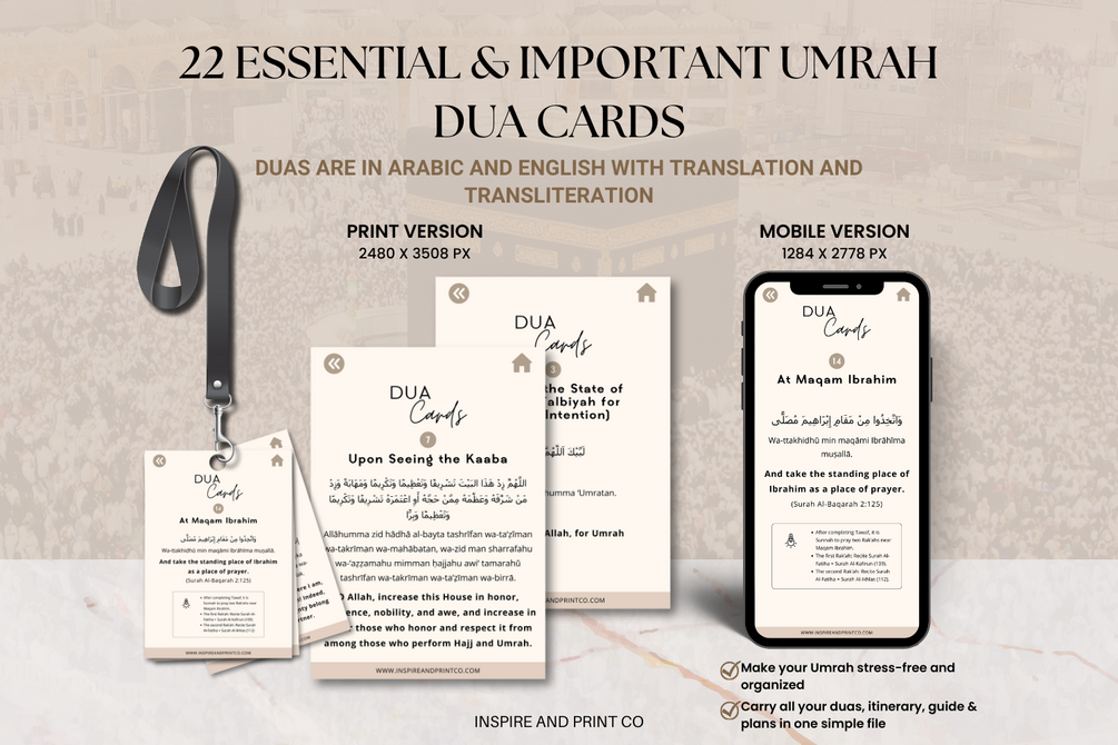 Umrah Complete Travel Guide, Dua Cards, Mobile Itinerary & Planner, Digital Printable Download, Beige Design, Islamic Flash Cards, Supplications Reminders